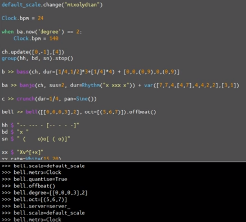 « Exalter la position du langage de programmation […] comme force expressive. » Nick Collins, Alex McLean, Julian Rohrhuber & Adrian Ward, « Live coding techniques for laptop performance », Organised Sound, vol. 8, n° 3, 2003.
