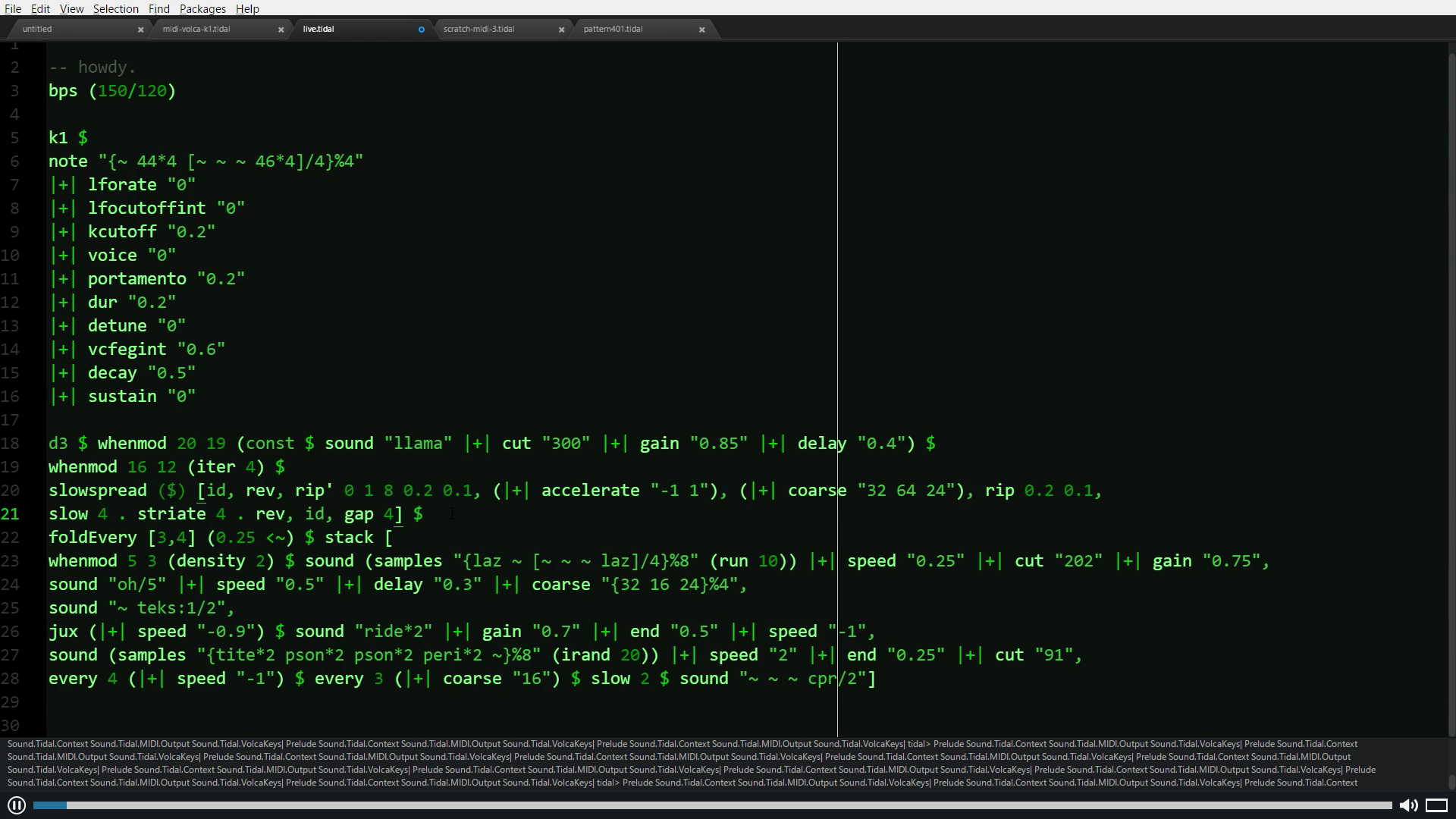 « Live coding asks questions about liveness, inviting us to reflect on what it means to be live — to have bodies, to communicate, to act. » Blackwell, Cocker, Cox, McLean, Magnusson, Live Coding: A User's Manual, MIT Press, 2022.